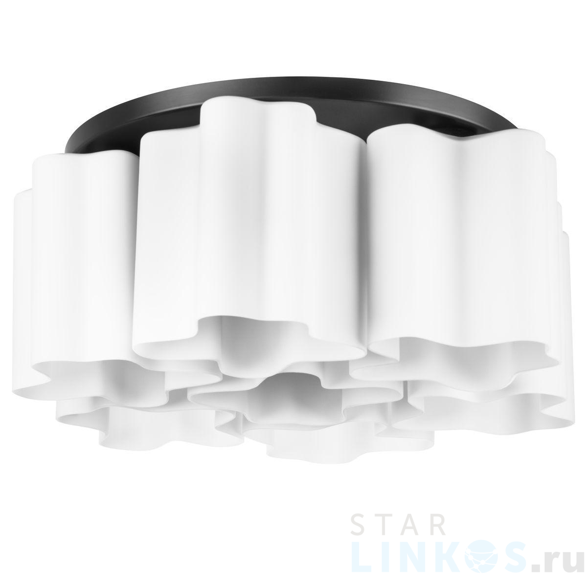 Поставщик рекомендует использовать лампы накаливания с цоколем E27. Потолочная люстра Lightstar Nubi 802077 в стиле арт-деко используется в интерьере гостиной с установкой на потолок.