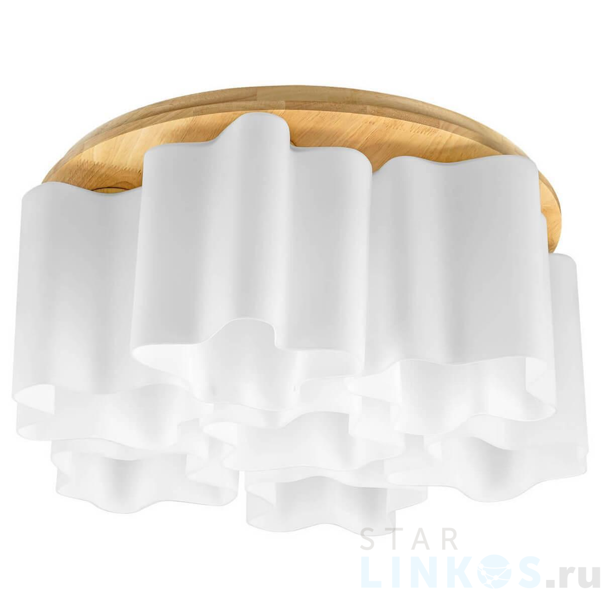 Поставщик рекомендует использовать лампы накаливания с цоколем E27. Потолочная люстра Lightstar Nubi Legno 802075 в стиле арт-деко используется в интерьере спальни с установкой на потолок.