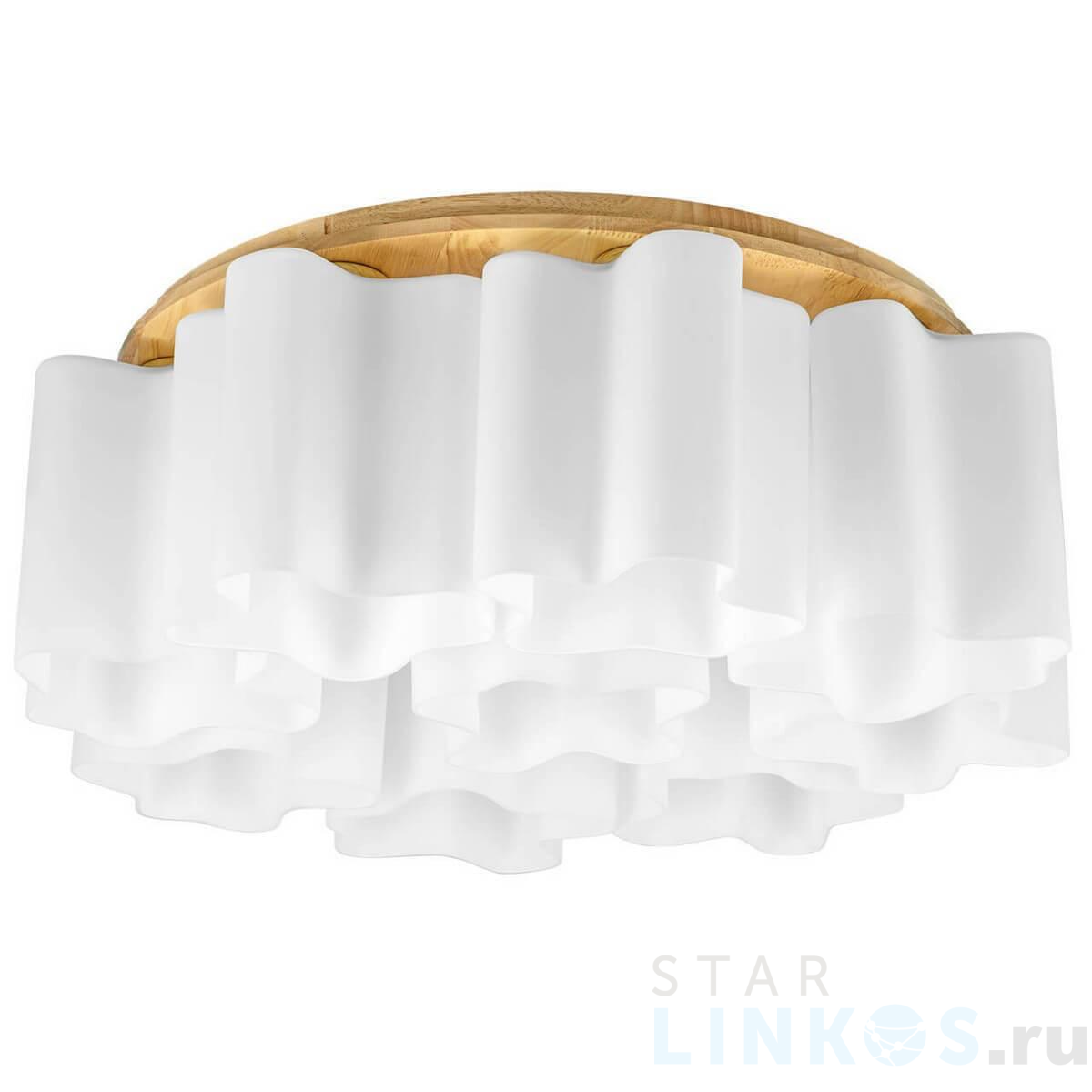Поставщик рекомендует использовать лампы накаливания с цоколем E27. Потолочная люстра Lightstar Nubi Legno 802095 в стиле арт-деко используется в интерьере гостиной с установкой на потолок.