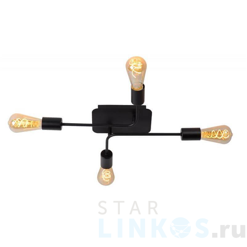 Поставщик рекомендует использовать лампы накаливания с цоколем E27 для освещения площади 8,9 м2. Потолочная люстра Lucide Lester 21118/04/30 в стиле лофт используется в интерьере кухни с установкой на потолок.