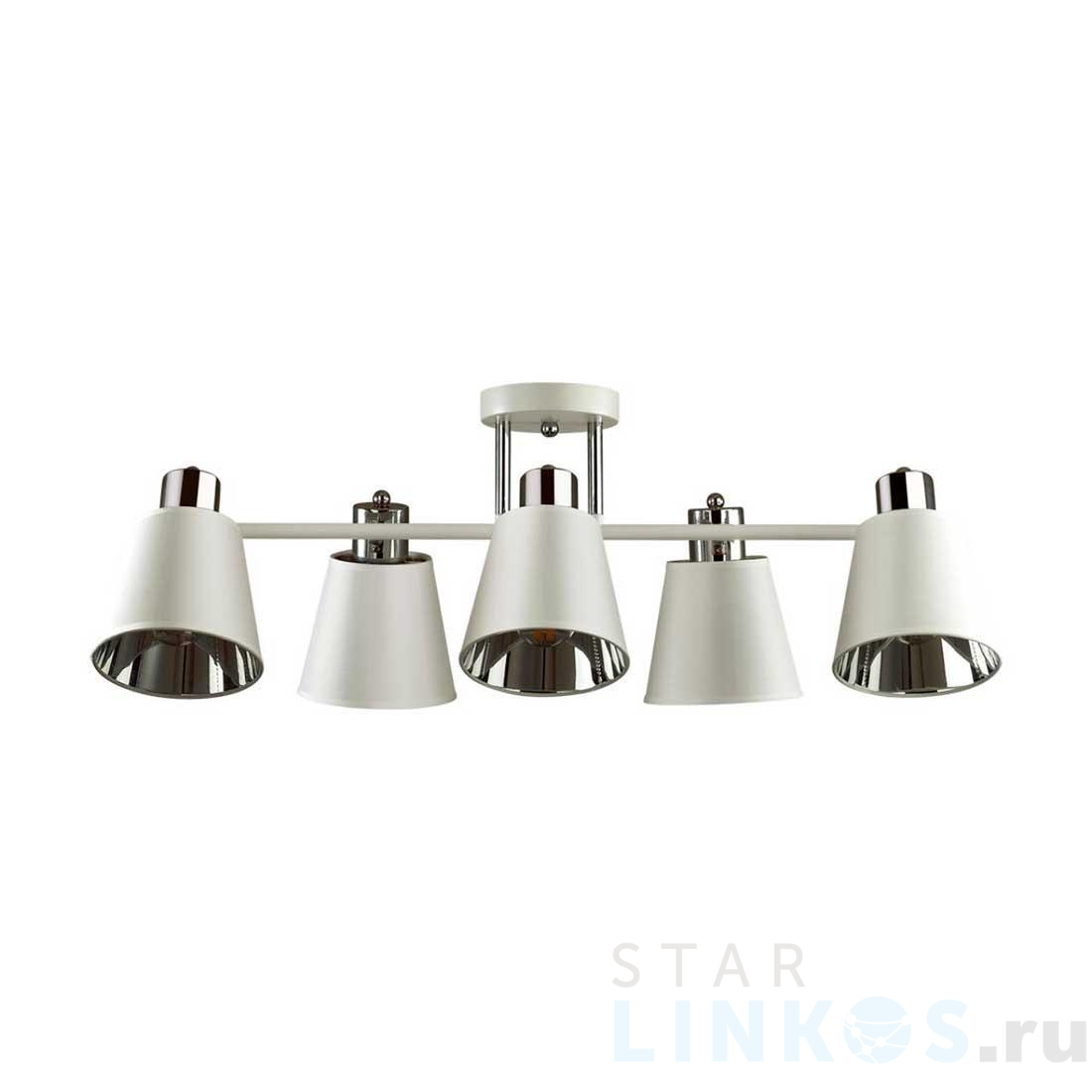 Поставщик рекомендует использовать лампы накаливания с цоколем E14 для освещения площади 10 м2. Потолочная люстра Lumion Comfi Gretchen 5219/5C в стиле Хай-Тек используется в интерьере кухни с установкой на потолок.