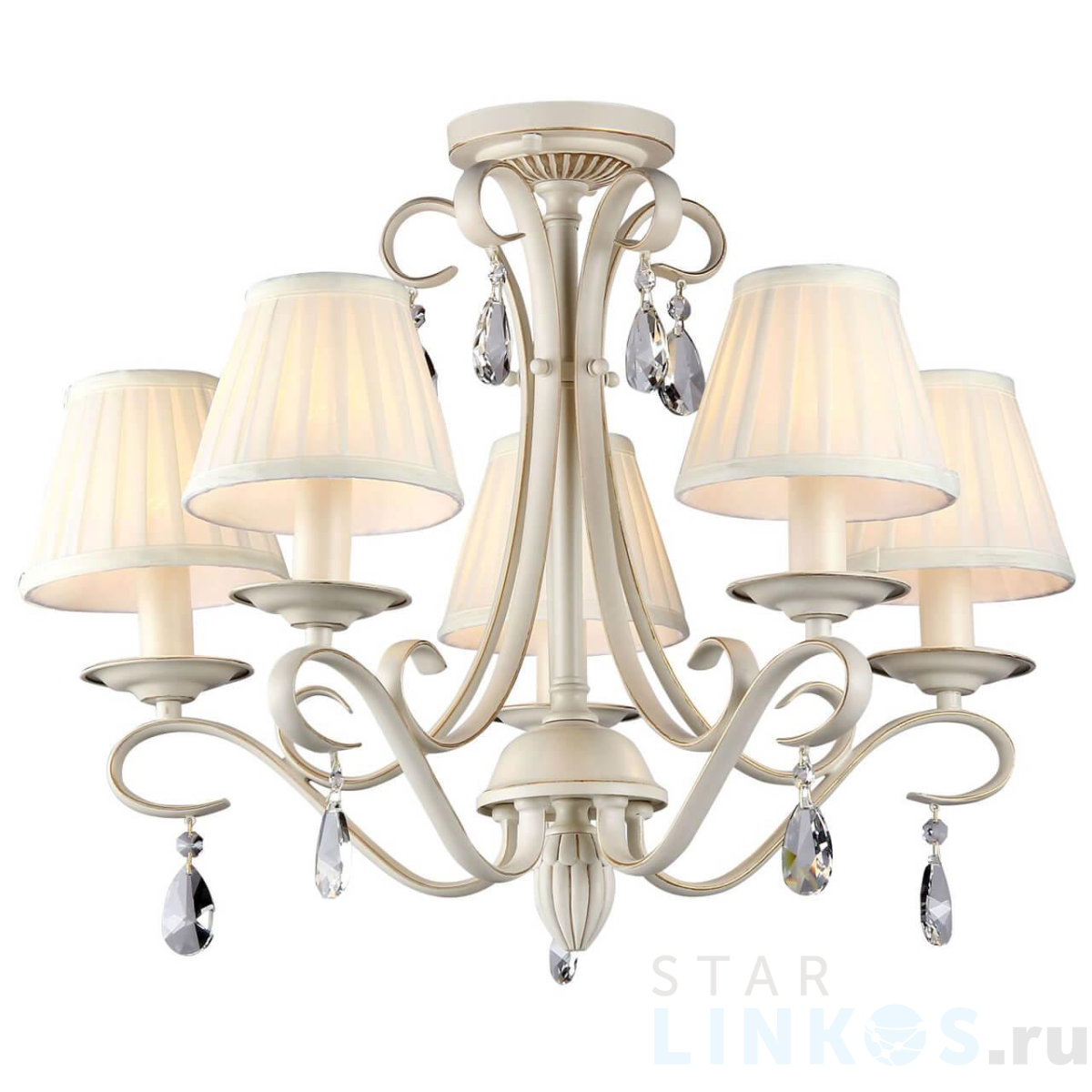 Поставщик рекомендует использовать лампы накаливания с цоколем E14 для освещения площади 16,7 м2. Потолочная люстра Maytoni Brionia ARM172-05-G в стиле прованс используется в интерьере спальни с установкой на потолок.