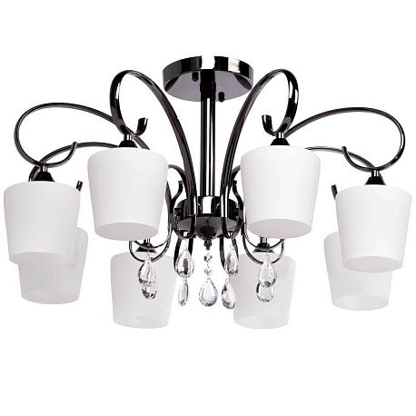 Поставщик рекомендует использовать лампы накаливания с цоколем E27 для освещения площади 27 м2. Потолочная люстра MW-Light Блеск 315011308 в современном стиле используется в интерьере гостиной с установкой на потолок.