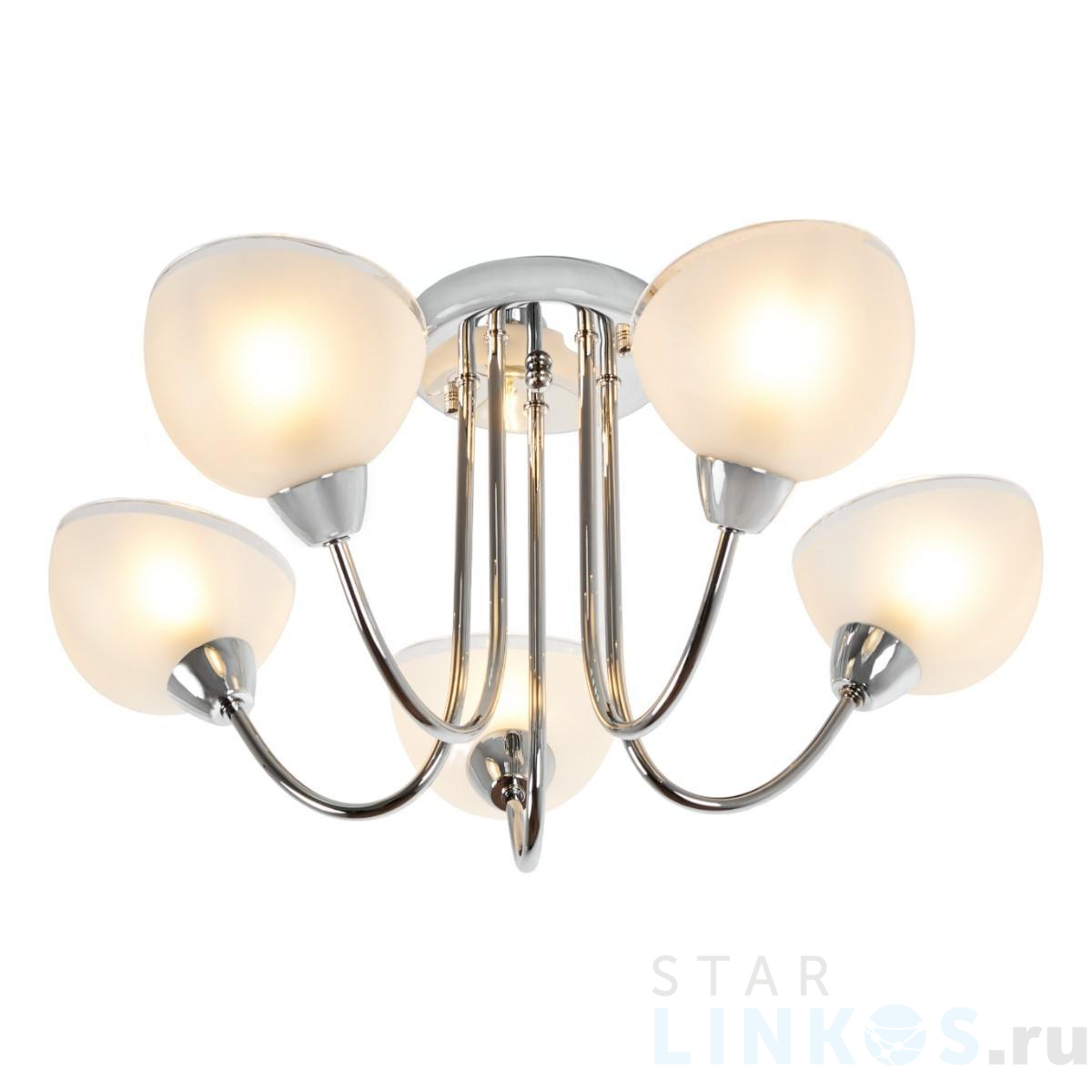 Поставщик рекомендует использовать лампы накаливания с цоколем E14 для освещения площади 12 м2. Потолочная люстра MyFar Ekaterina MR1291-5C в современном стиле используется в интерьере гостиной с установкой на потолок.