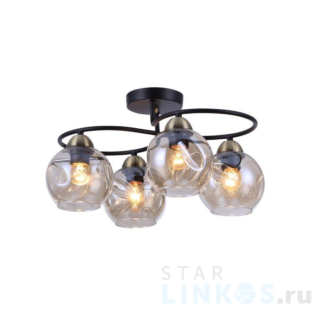 Поставщик рекомендует использовать лампы накаливания с цоколем E27 для освещения площади 9 м2. Потолочная люстра Omnilux Carini OML-95007-04 в стиле лофт используется в интерьере кухни с установкой на потолок.