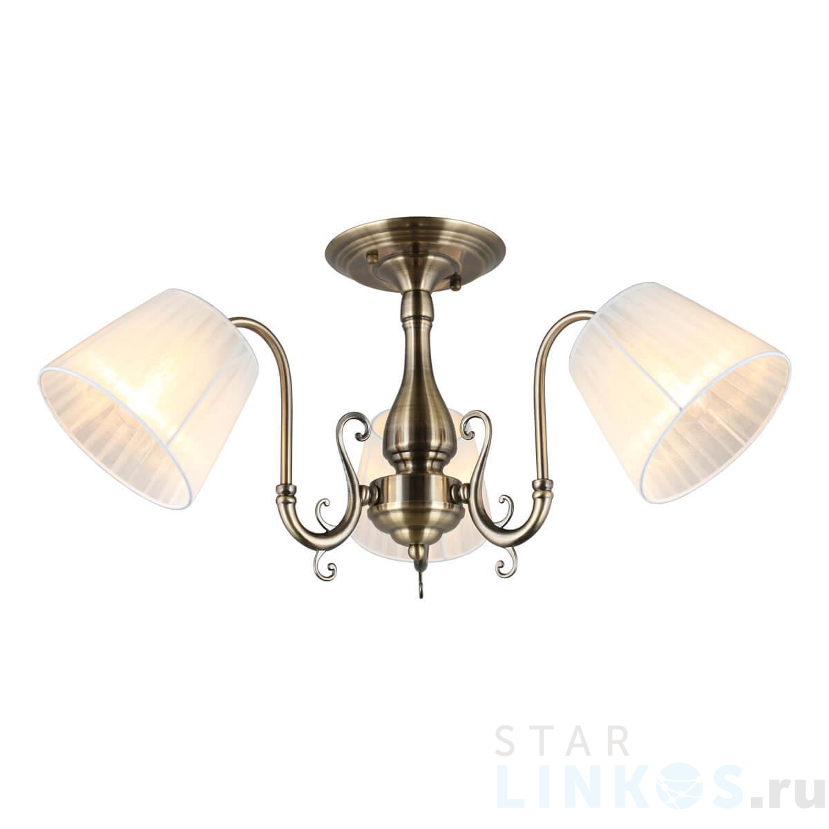 Поставщик рекомендует использовать лампы накаливания с цоколем E27 для освещения площади 9 м2. Потолочная люстра Omnilux Leonessa OML-29117-03 в классическом стиле используется в интерьере спальни с установкой на потолок.