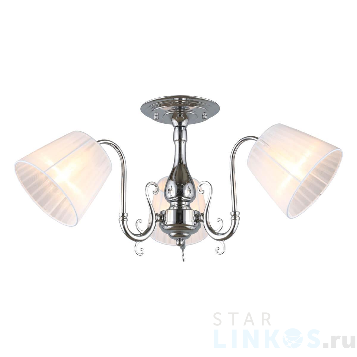 Поставщик рекомендует использовать лампы накаливания с цоколем E27 для освещения площади 9 м2. Потолочная люстра Omnilux Leonessa OML-29127-03 в классическом стиле используется в интерьере спальни с установкой на потолок.