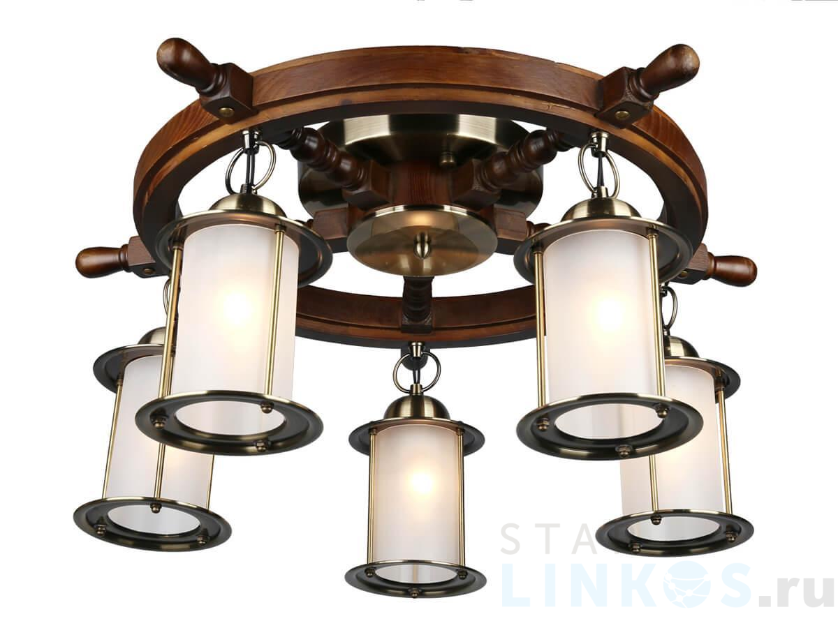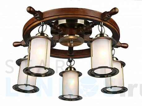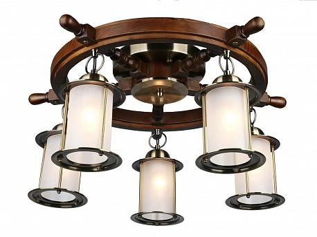 Поставщик рекомендует использовать лампы накаливания с цоколем E27 для освещения площади 17 м2. Потолочная люстра Omnilux OML-50307-05 в кантри-стиле используется в интерьере гостиной с установкой на потолок.