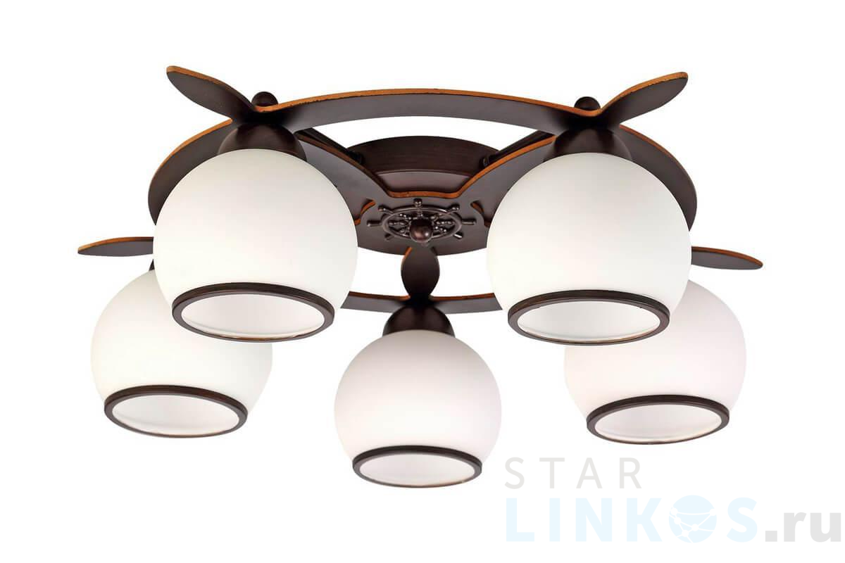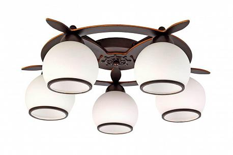 Поставщик рекомендует использовать лампы накаливания с цоколем E27 для освещения площади 17 м2. Потолочная люстра Omnilux OML-50507-05 в кантри-стиле используется в интерьере спальни с установкой на потолок.