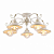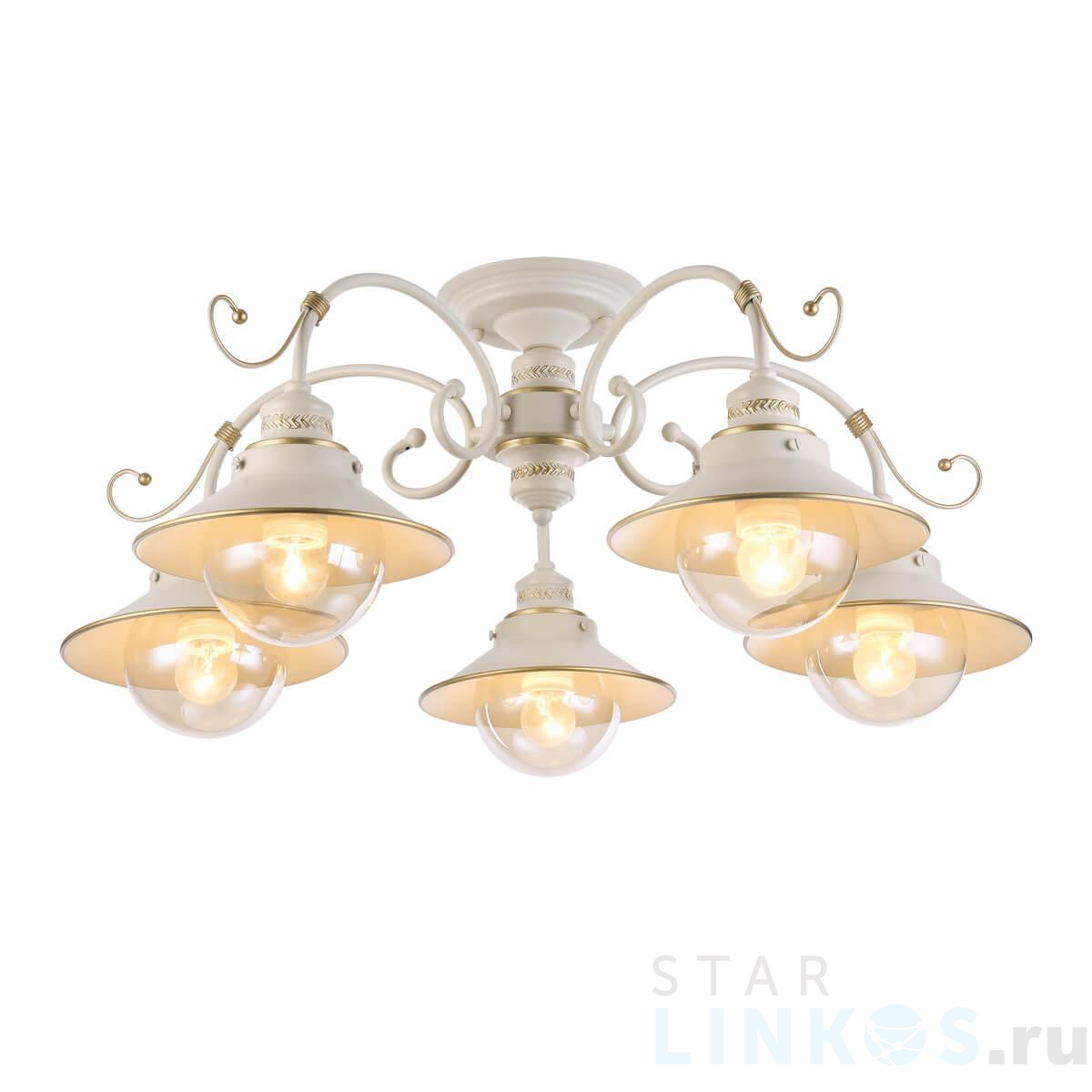 Поставщик рекомендует использовать лампы накаливания с цоколем E27 для освещения площади 10 м2. Потолочная люстра Omnilux Torri OML-50807-05 в кантри-стиле используется в интерьере спальни с установкой на потолок.
