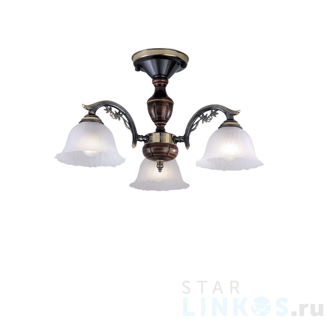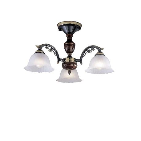 Поставщик рекомендует использовать лампы накаливания с цоколем E27 для освещения площади 9 м2. Потолочная люстра Reccagni Angelo PL.2700/3 в кантри-стиле используется в интерьере спальни с установкой на потолок.