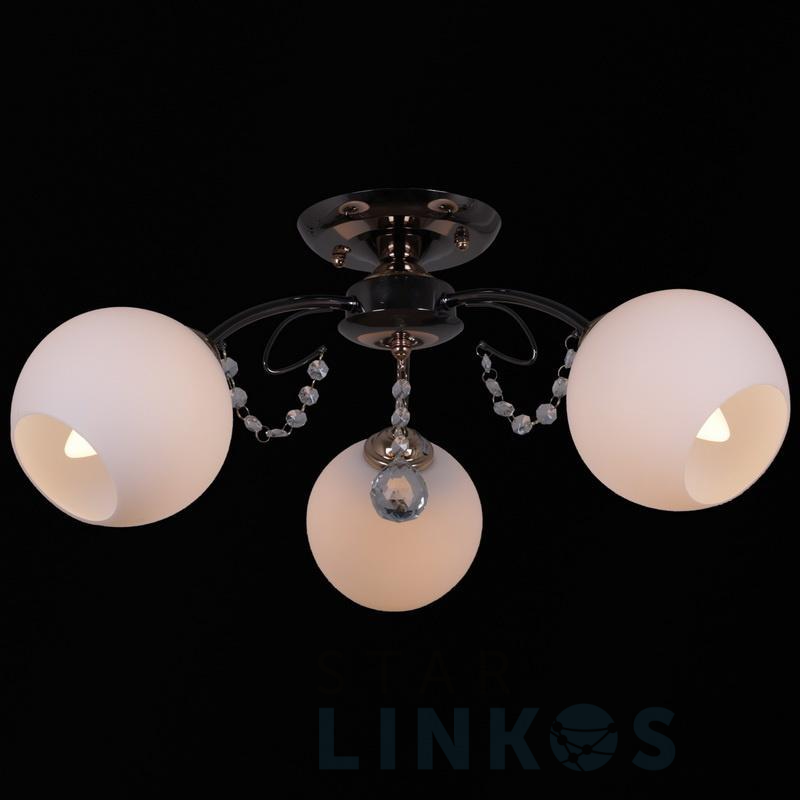 Поставщик рекомендует использовать лампы накаливания с цоколем E27 для освещения площади 24 м2. Потолочная люстра Reluce 31279-0.3-03C в используется в интерьере спальни с установкой на потолок.