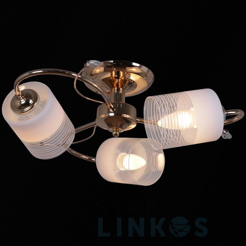 Поставщик рекомендует использовать лампы накаливания с цоколем E27 для освещения площади 24 м2. Потолочная люстра Reluce 32281-0.3-03 в используется в интерьере спальни с установкой на потолок.