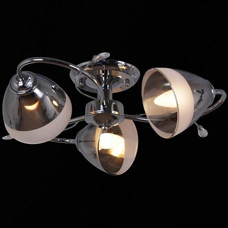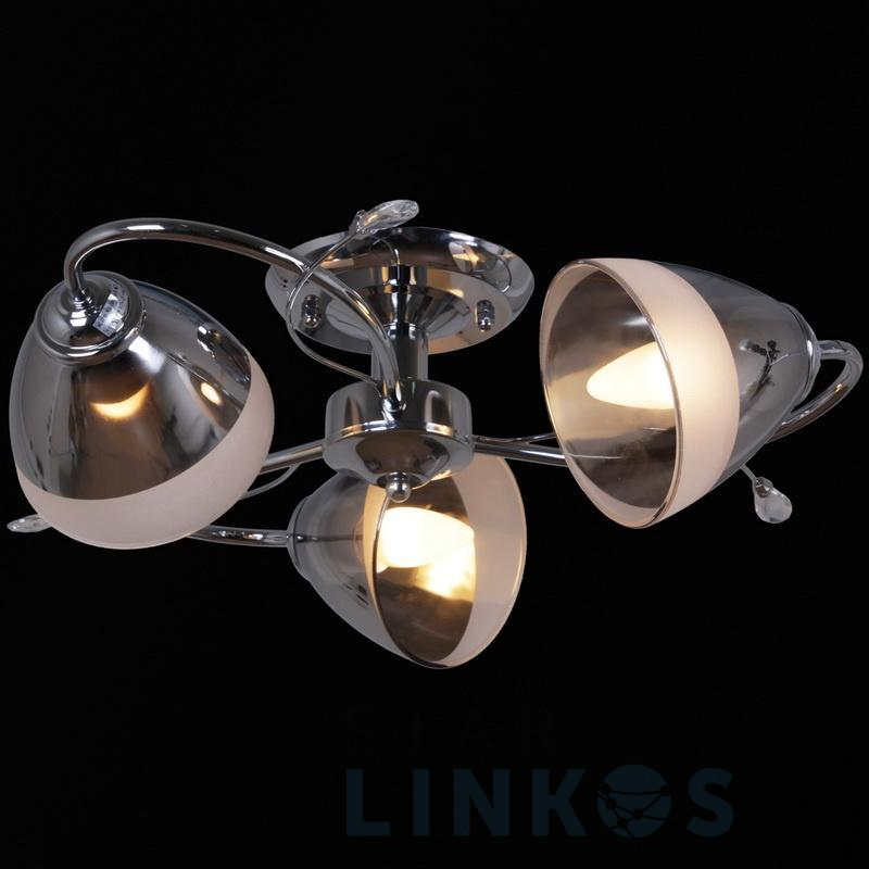 Поставщик рекомендует использовать лампы накаливания с цоколем E27 для освещения площади 24 м2. Потолочная люстра Reluce 32283-0.3-03 в используется в интерьере спальни с установкой на потолок.
