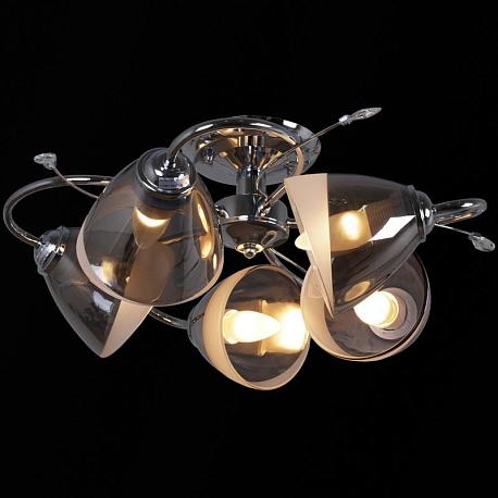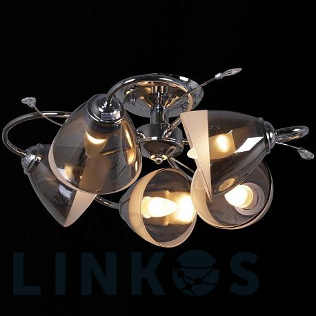 Поставщик рекомендует использовать лампы накаливания с цоколем E27 для освещения площади 40 м2. Потолочная люстра Reluce 32283-0.3-05 в используется в интерьере спальни с установкой на потолок.