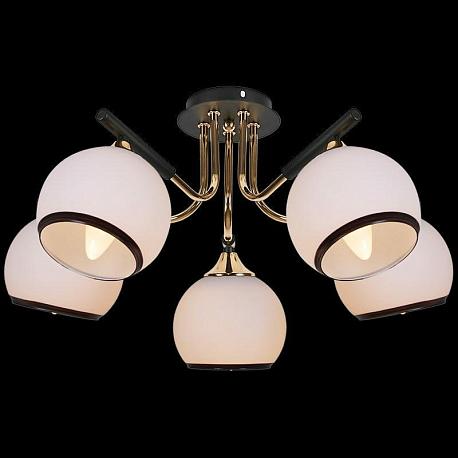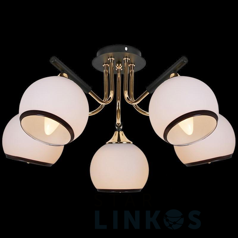 Поставщик рекомендует использовать лампы накаливания с цоколем E27 для освещения площади 40 м2. Потолочная люстра Reluce 52132-0.3-05A в современном стиле используется в интерьере гостиной с установкой на потолок.