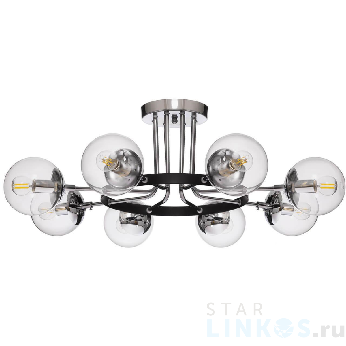 Поставщик рекомендует использовать лампы накаливания с цоколем E14. Потолочная люстра Vele Luce Intenso VL1413L08 в используется в интерьере гостиной с установкой на потолок.