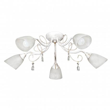 Поставщик рекомендует использовать лампы накаливания с цоколем E14 для освещения площади 11,1 м2. Потолочная люстра Vitaluce V1473/5PL в классическом стиле используется в интерьере гостиной с установкой на потолок.