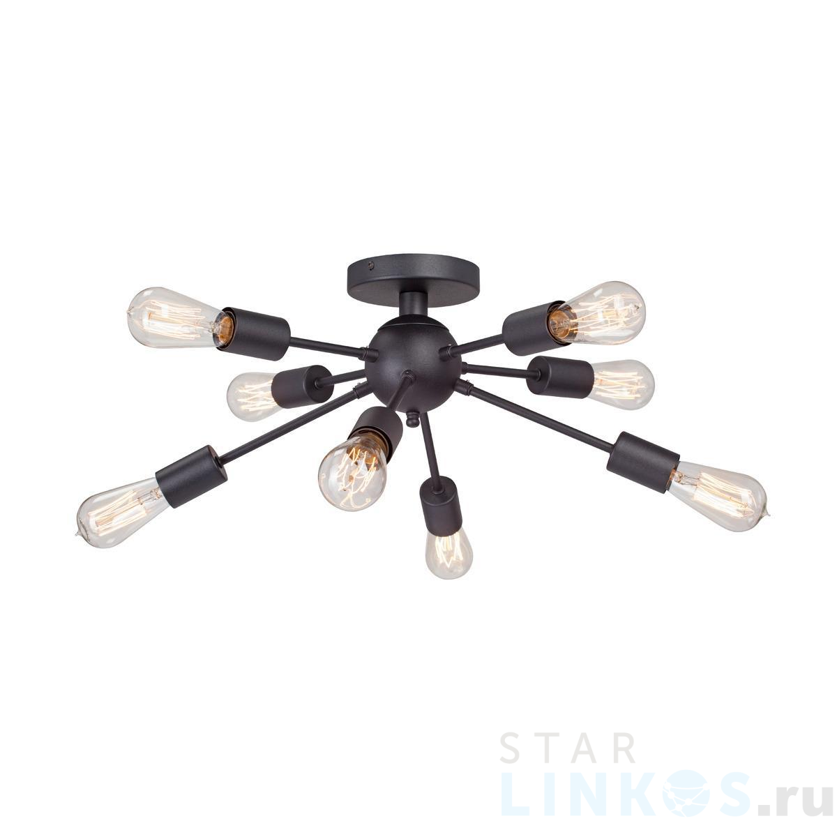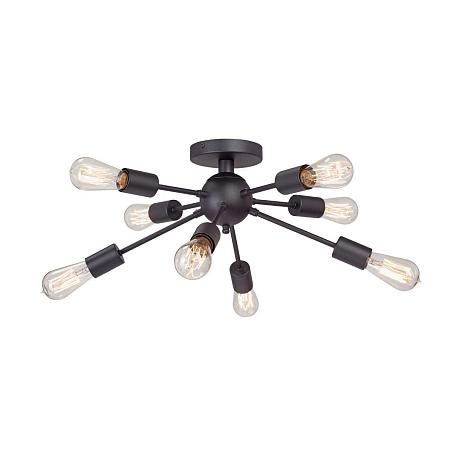 Поставщик рекомендует использовать лампы накаливания с цоколем E27 для освещения площади 24 м2. Потолочная люстра Vitaluce V3763-1/8PL в стиле лофт используется в интерьере гостиной с установкой на потолок.