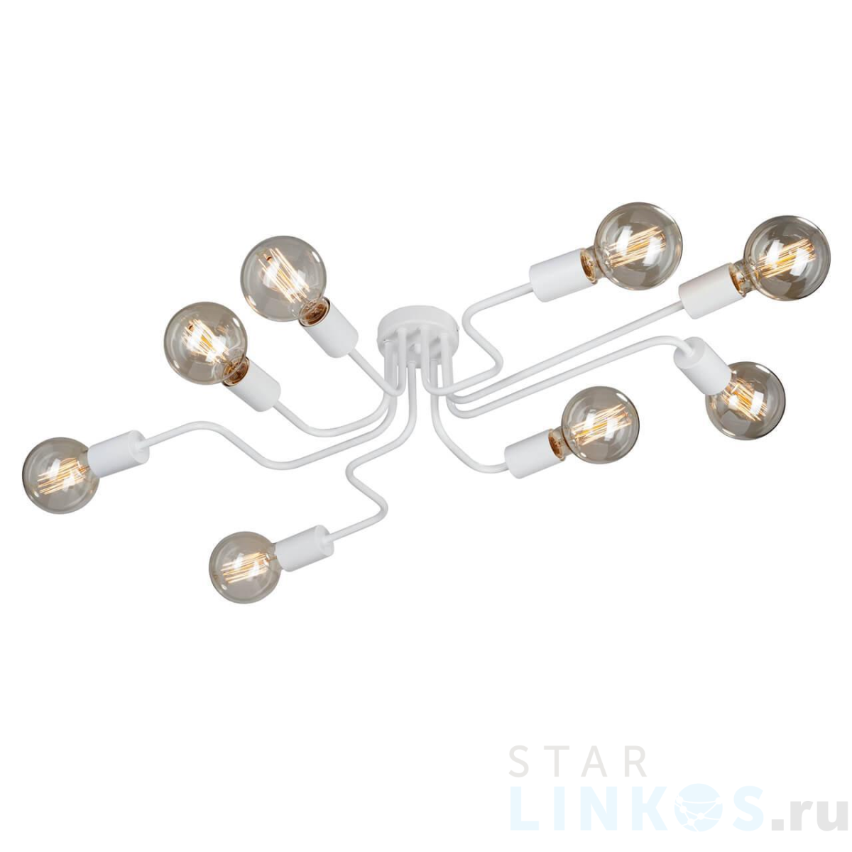 Поставщик рекомендует использовать лампы накаливания с цоколем E27 для освещения площади 17,8 м2. Потолочная люстра Vitaluce V4196-0/8PL в стиле лофт используется в интерьере гостиной с установкой на потолок.