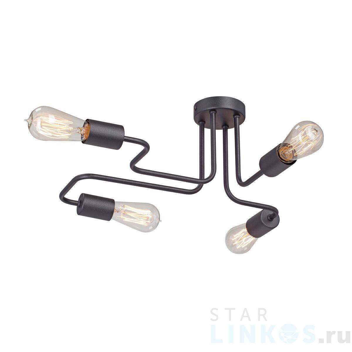 Поставщик рекомендует использовать лампы накаливания с цоколем E27 для освещения площади 12 м2. Потолочная люстра Vitaluce V4196-1/4PL в стиле лофт используется в интерьере кухни с установкой на потолок.