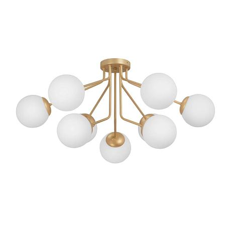 Поставщик рекомендует использовать лампы накаливания с цоколем E14 для освещения площади 27 м2. Потолочная люстра Vitaluce V4287-8/9PL в стиле арт-деко используется в интерьере гостиной с установкой на потолок.