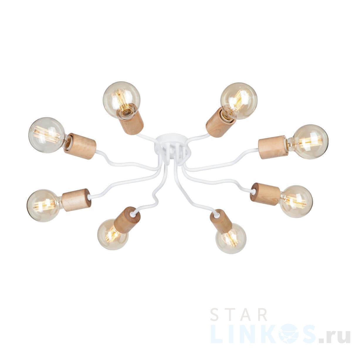 Поставщик рекомендует использовать лампы накаливания с цоколем E27 для освещения площади 24 м2. Потолочная люстра Vitaluce V4559-0/8PL в стиле лофт используется в интерьере гостиной с установкой на потолок.