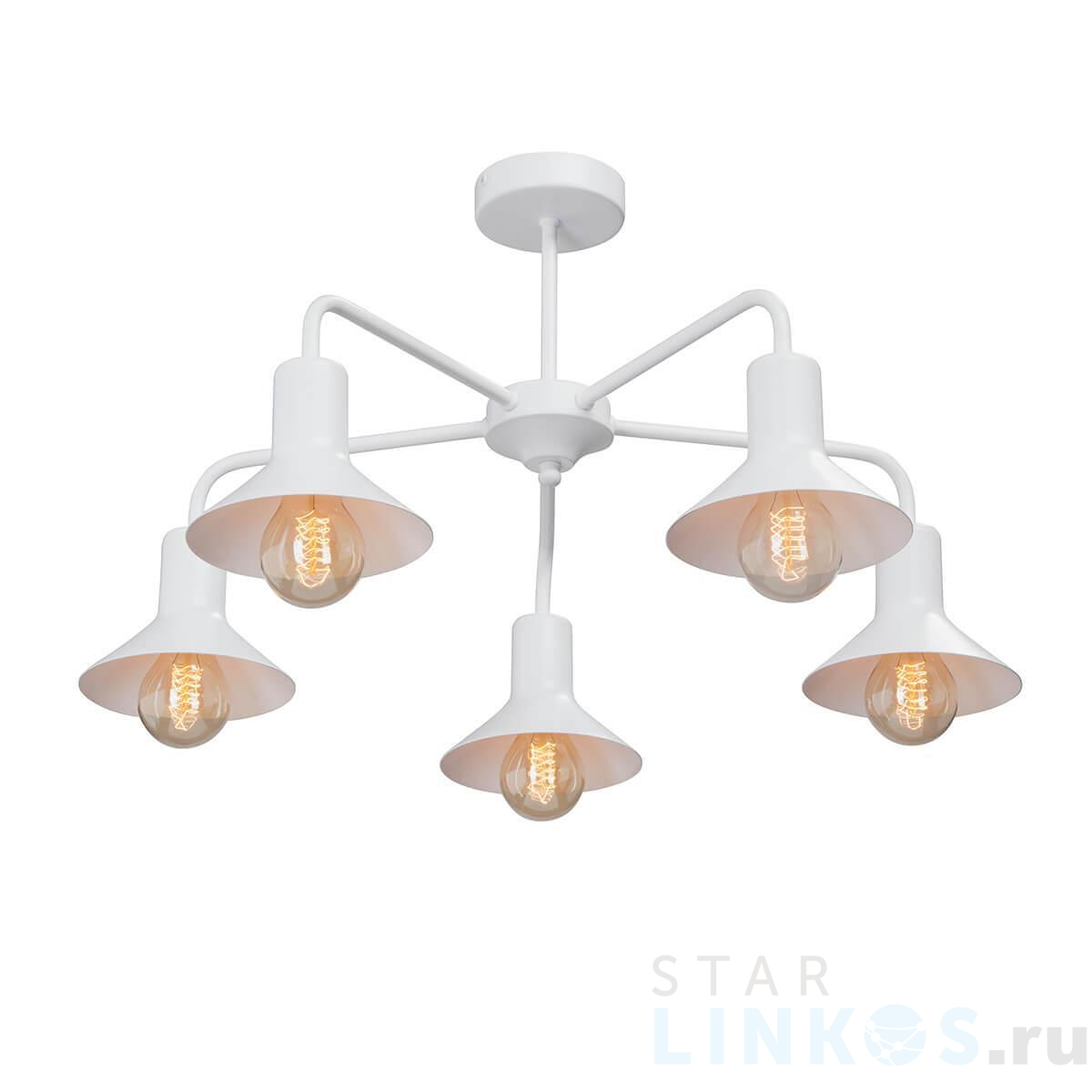 Поставщик рекомендует использовать лампы накаливания с цоколем E27 для освещения площади 10 м2. Потолочная люстра Vitaluce V4805-0/5PL в стиле лофт используется в интерьере гостиной с установкой на потолок.