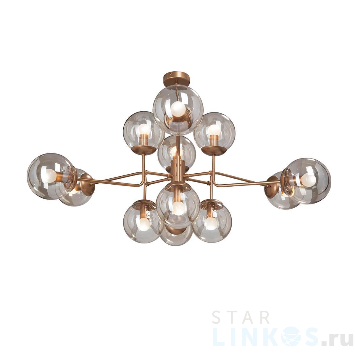 Поставщик рекомендует использовать лампы накаливания с цоколем E14 для освещения площади 26,7 м2. Потолочная люстра Vitaluce V4880-8/12PL в стиле арт-деко используется в интерьере гостиной с установкой на потолок.