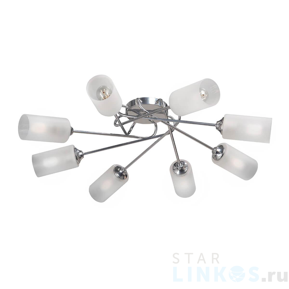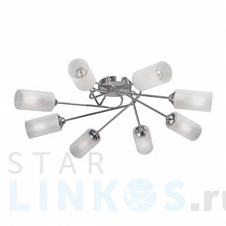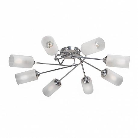 Поставщик рекомендует использовать лампы накаливания с цоколем E27 для освещения площади 17,8 м2. Потолочная люстра Vitaluce V4909-9/8PL в стиле арт-деко используется в интерьере гостиной с установкой на потолок.
