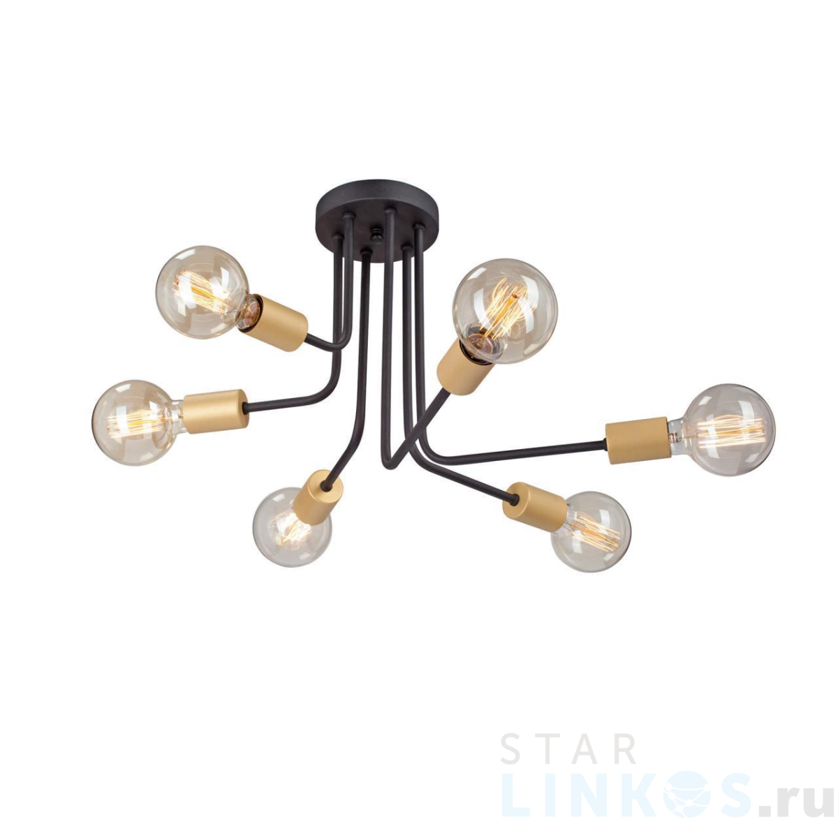 Поставщик рекомендует использовать лампы накаливания с цоколем E27 для освещения площади 18 м2. Потолочная люстра Vitaluce V4957-1/6PL в стиле лофт используется в интерьере гостиной с установкой на потолок.