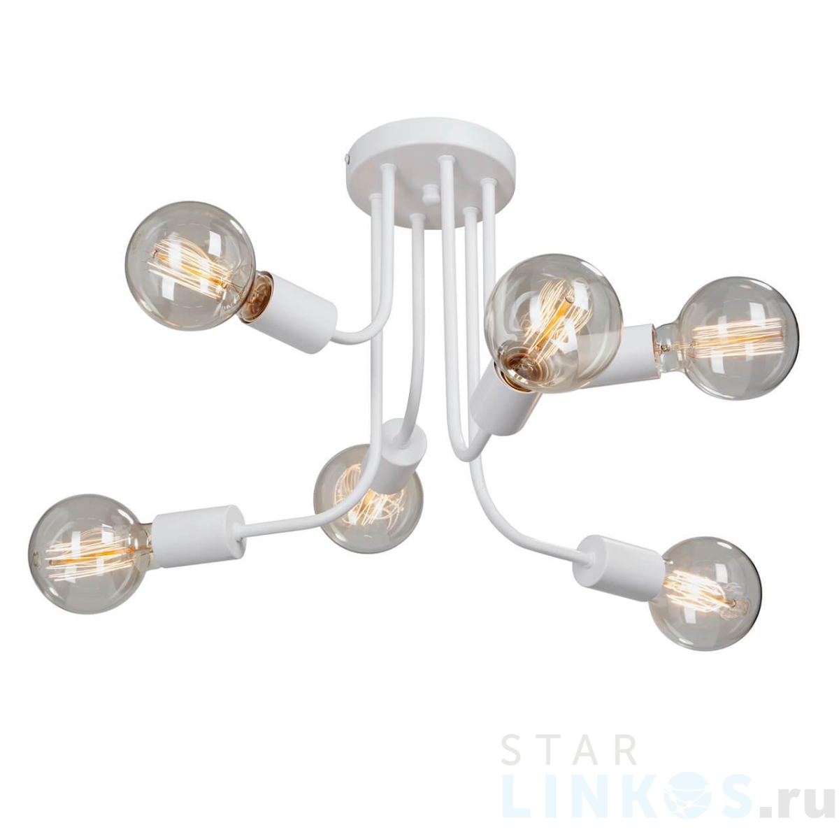 Поставщик рекомендует использовать лампы накаливания с цоколем E27 для освещения площади 13,3 м2. Потолочная люстра Vitaluce V4960-0/6PL в стиле лофт используется в интерьере гостиной с установкой на потолок.