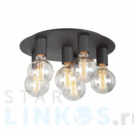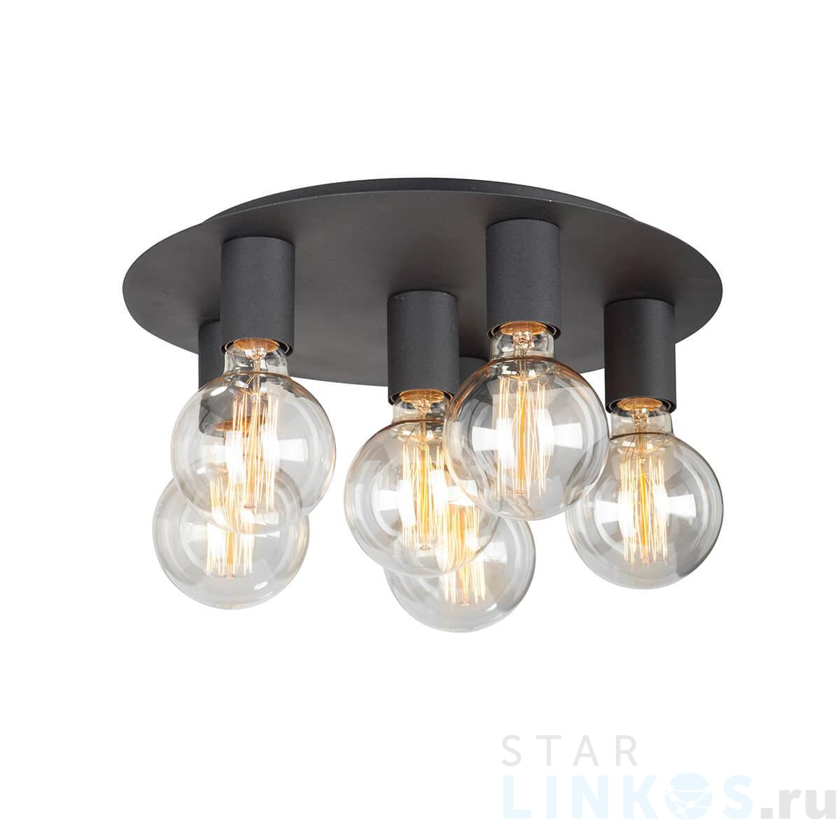 Поставщик рекомендует использовать лампы накаливания с цоколем E27 для освещения площади 13,3 м2. Потолочная люстра Vitaluce V4969-1/6PL в стиле лофт используется в интерьере гостиной с установкой на потолок.