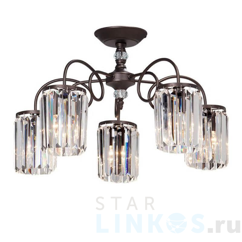 Поставщик рекомендует использовать лампы накаливания с цоколем E14 для освещения площади 11,1 м2. Потолочная люстра Vitaluce V5203-8/5PL в стиле прованс используется в интерьере гостиной с установкой на потолок.