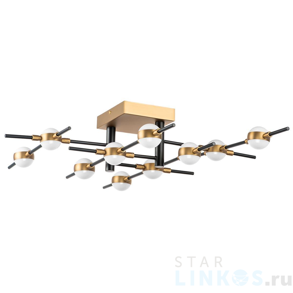 Потолочная светодиодная люстра Lightstar Bergamo 745147 в стиле арт-деко используется в интерьере спальни с установкой на потолок.