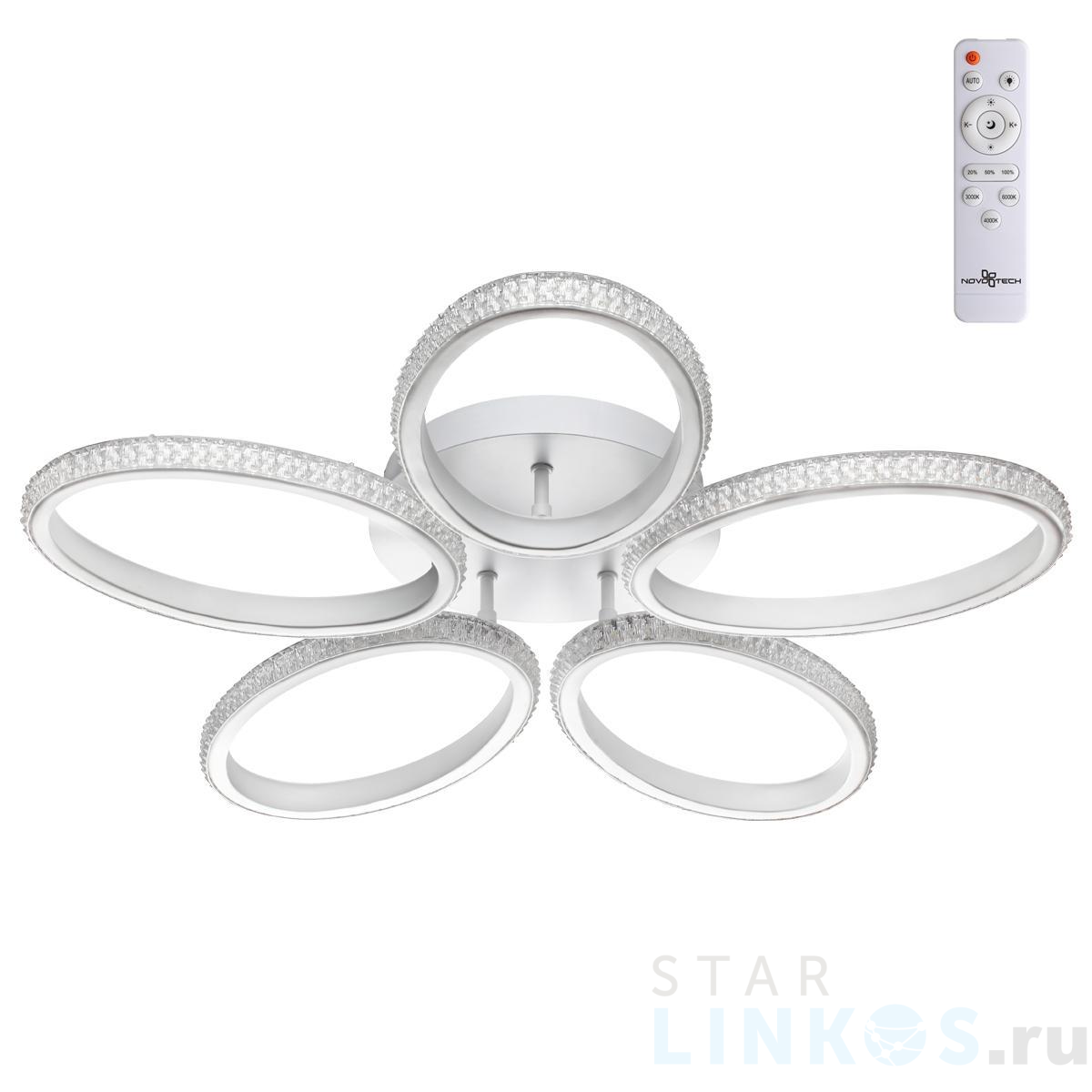 Потолочная светодиодная люстра Novotech Calm 358932 в стиле Хай-Тек используется в интерьере спальни с установкой на потолок.