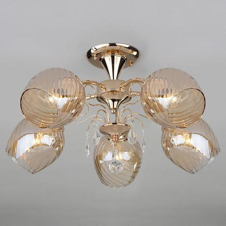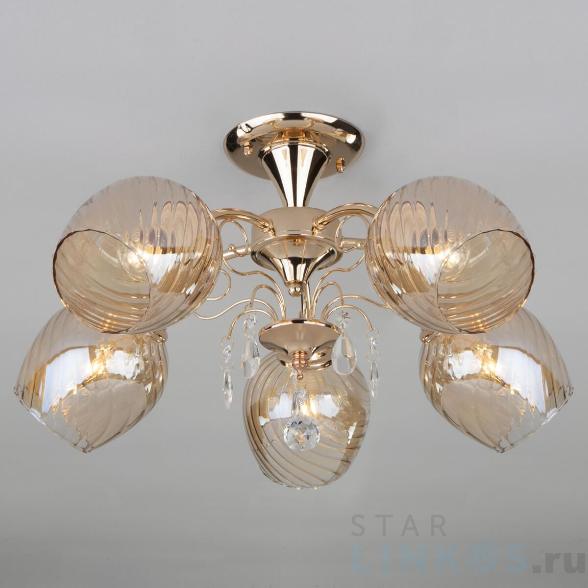 Поставщик рекомендует использовать лампы накаливания с цоколем E27. Потолочный светильник Eurosvet 30120/5 золото в используется в интерьере спальни с установкой на потолок.