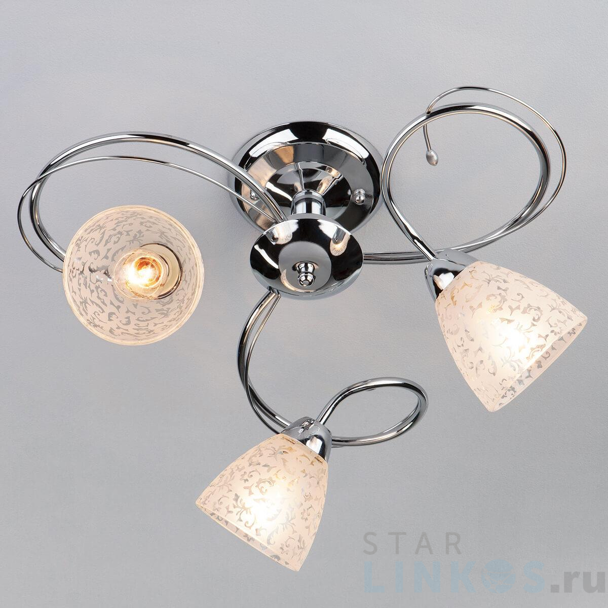 Поставщик рекомендует использовать лампы накаливания с цоколем E14. Потолочный светильник Eurosvet 30130/3 хром в современном стиле используется в интерьере кухни с установкой на потолок.