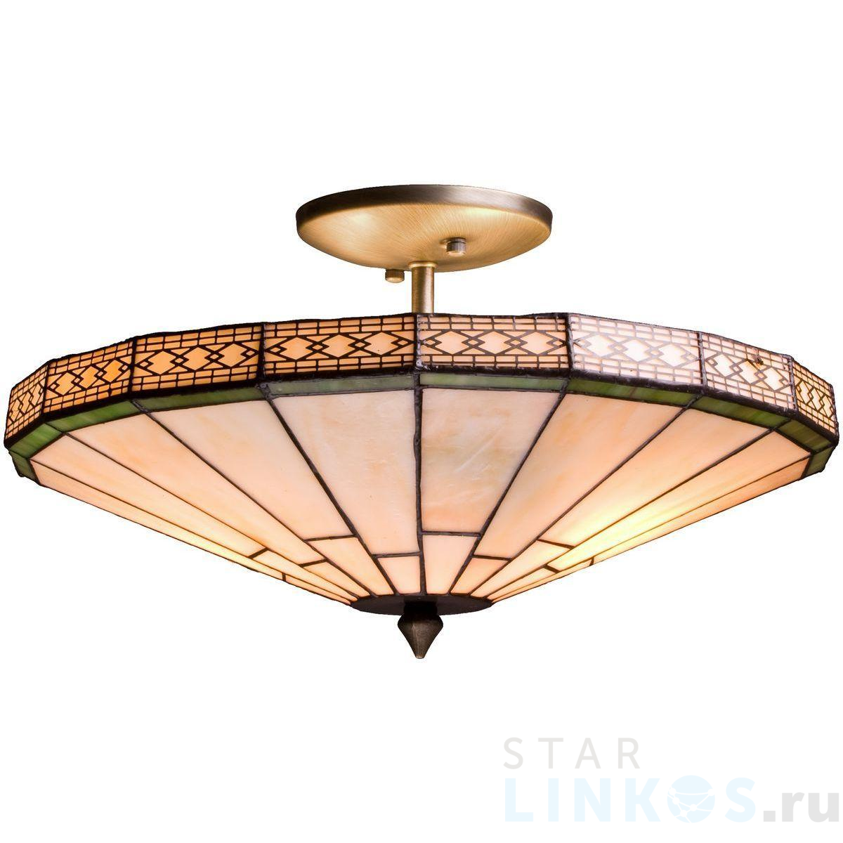 Поставщик рекомендует использовать лампы накаливания с цоколем E27 для освещения площади 6,7 м2. Потолочная люстра Velante 857-807-02 в стиле Тиффани используется в интерьере прихожей с установкой на потолок.