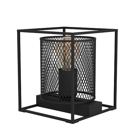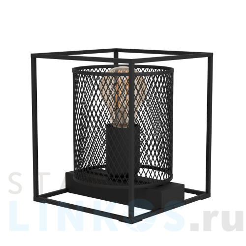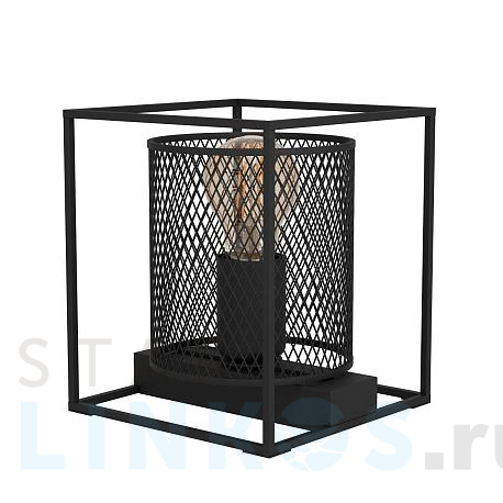 Поставщик рекомендует использовать лампы накаливания с цоколем E27. Настольная лампа Eglo Catterick 43774 в стиле лофт используется в интерьере спальни с установкой на стол.