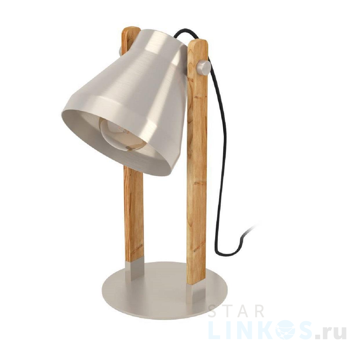 Поставщик рекомендует использовать лампы накаливания с цоколем E27. Настольная лампа Eglo Cawton 43953 в кантри-стиле используется в интерьере спальни с установкой на стол.