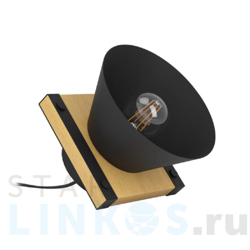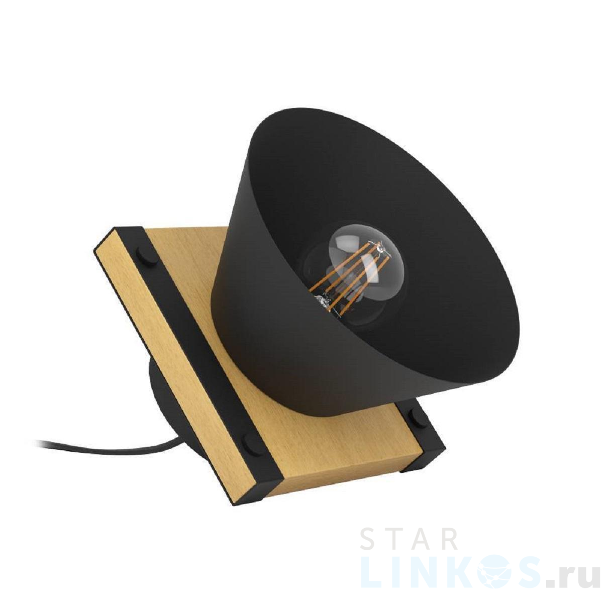 Поставщик рекомендует использовать лампы накаливания с цоколем E27. Настольная лампа Eglo Maccles 43959 в стиле лофт используется в интерьере спальни с установкой на стол.