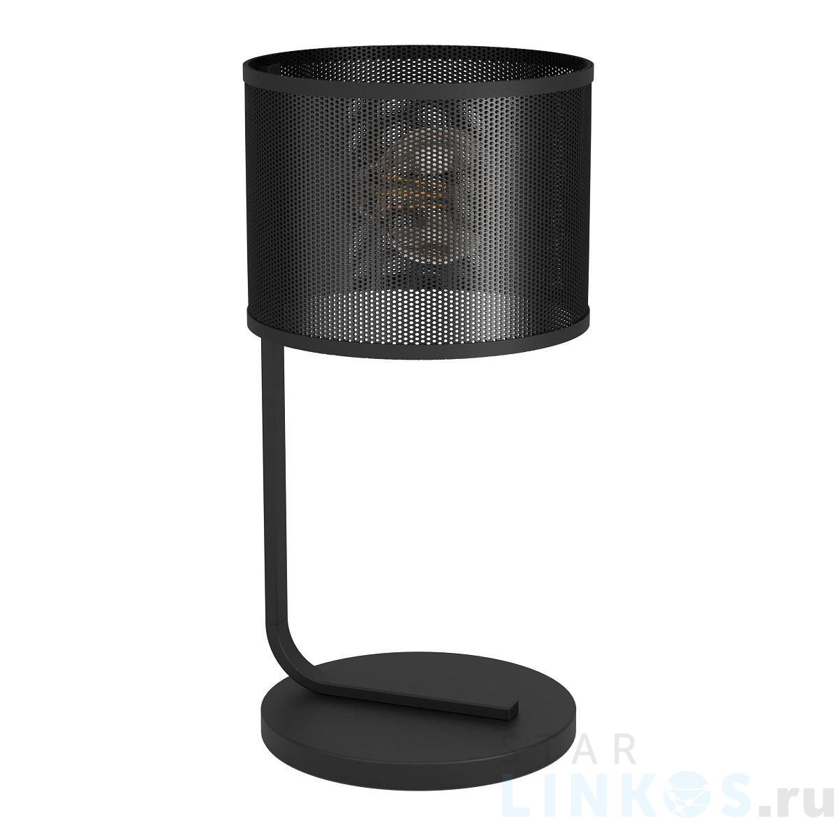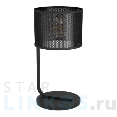 Поставщик рекомендует использовать лампы накаливания с цоколем E27. Настольная лампа Eglo Manby 43797 в стиле лофт используется в интерьере спальни с установкой на стол.