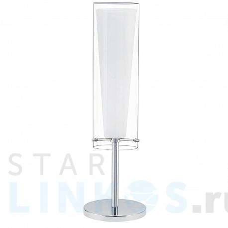 Поставщик рекомендует использовать лампы накаливания с цоколем E27 для освещения площади 3,3 м2. Настольная лампа Eglo Pinto 89835 в современном стиле используется в интерьере кухни с установкой на стол.