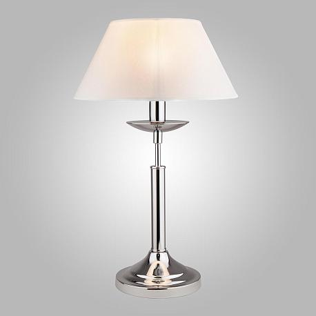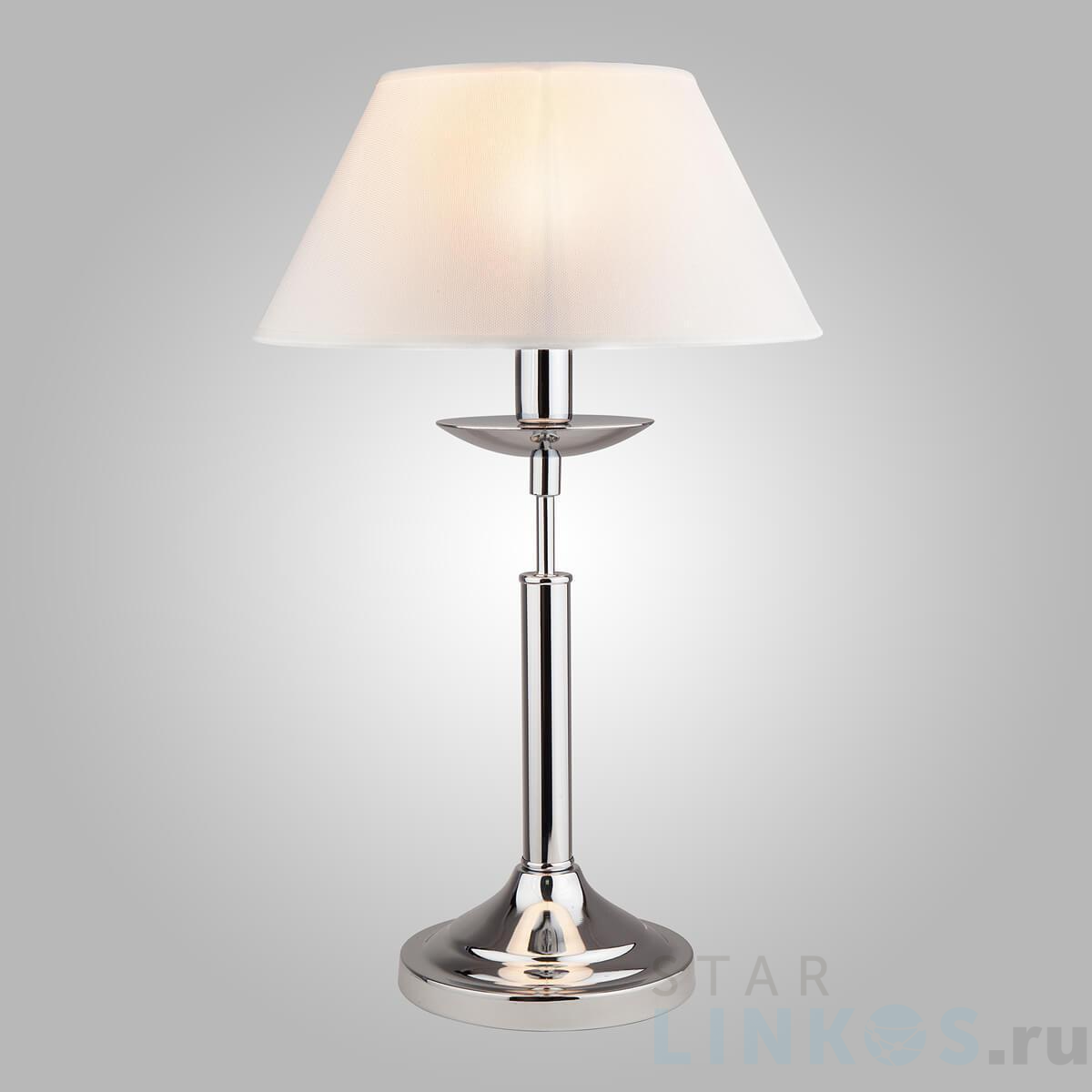 Поставщик рекомендует использовать лампы накаливания с цоколем E14. Настольная лампа Eurosvet 01010/1 хром в классическом стиле используется в интерьере спальни с установкой на стол.
