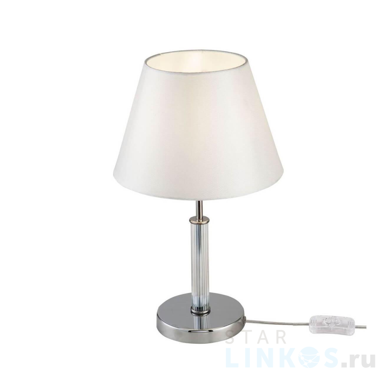 Поставщик рекомендует использовать лампы накаливания с цоколем E14 для освещения площади 2,2 м2. Настольная лампа Freya Clarissa FR5020TL-01CH в используется в интерьере спальни с установкой на стол.