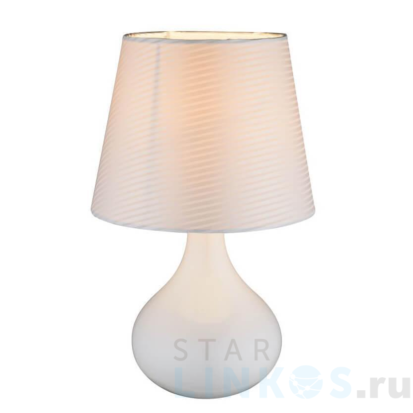 Поставщик рекомендует использовать лампы накаливания с цоколем E14 для освещения площади 2,2 м2. Настольная лампа Globo Freedom 21650 в современном стиле используется в интерьере спальни с установкой на стол.
