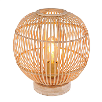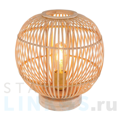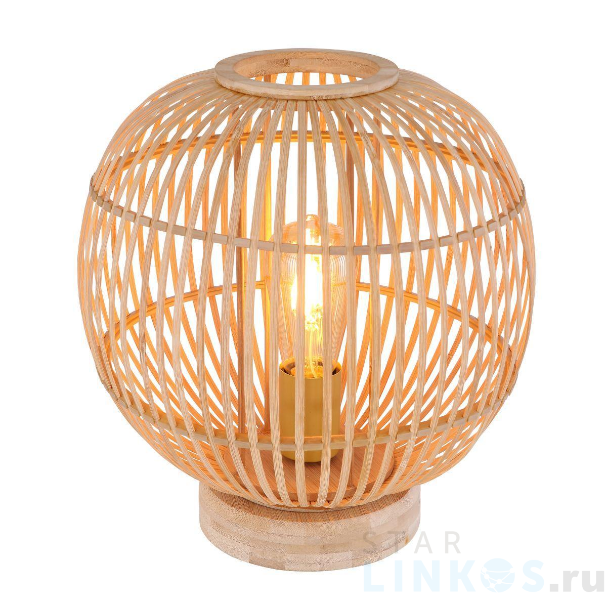 Поставщик рекомендует использовать лампы накаливания с цоколем E27 для освещения площади 6 м2. Настольная лампа Globo Hildegard 15368T в кантри-стиле используется в интерьере спальни с установкой на стол.