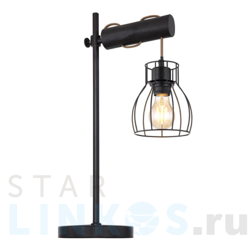 Поставщик рекомендует использовать лампы накаливания с цоколем E27. Настольная лампа Globo Mina 15326TNB в стиле лофт используется в интерьере гостиной с установкой на стол.