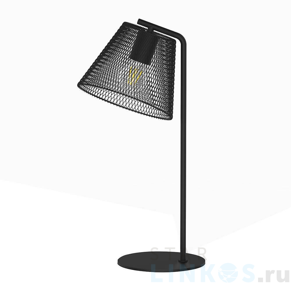 Поставщик рекомендует использовать лампы накаливания с цоколем E27 для освещения площади 3,3 м2. Настольная лампа Hiper Grid H652-0 в стиле лофт используется в интерьере спальни с установкой на стол.